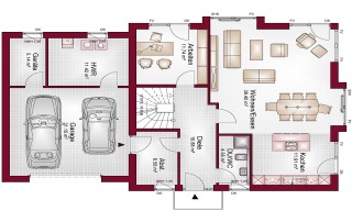 Pure Lebensqualität! Beim Top-Line 32 haben unsere Architekten eine große Vielfalt in Bezug auf die Optik und eine maximale Individualität im Innenbereich in den Vordergrund gestellt. Repräsentativ, klassich, modern glänzt die Aussenfassade mit ihren Erkern. Im Inneren zeigt dieser Grundriss die Möglichkeiten auf, die Bauherren bei individuellen Planungen für Möglichkeiten haben. Planen Sie doch einfach mit uns, bis Ihnen Ihr Grundriss gefällt. Über 500 Haustypen zeigen Ihnen den Weg.